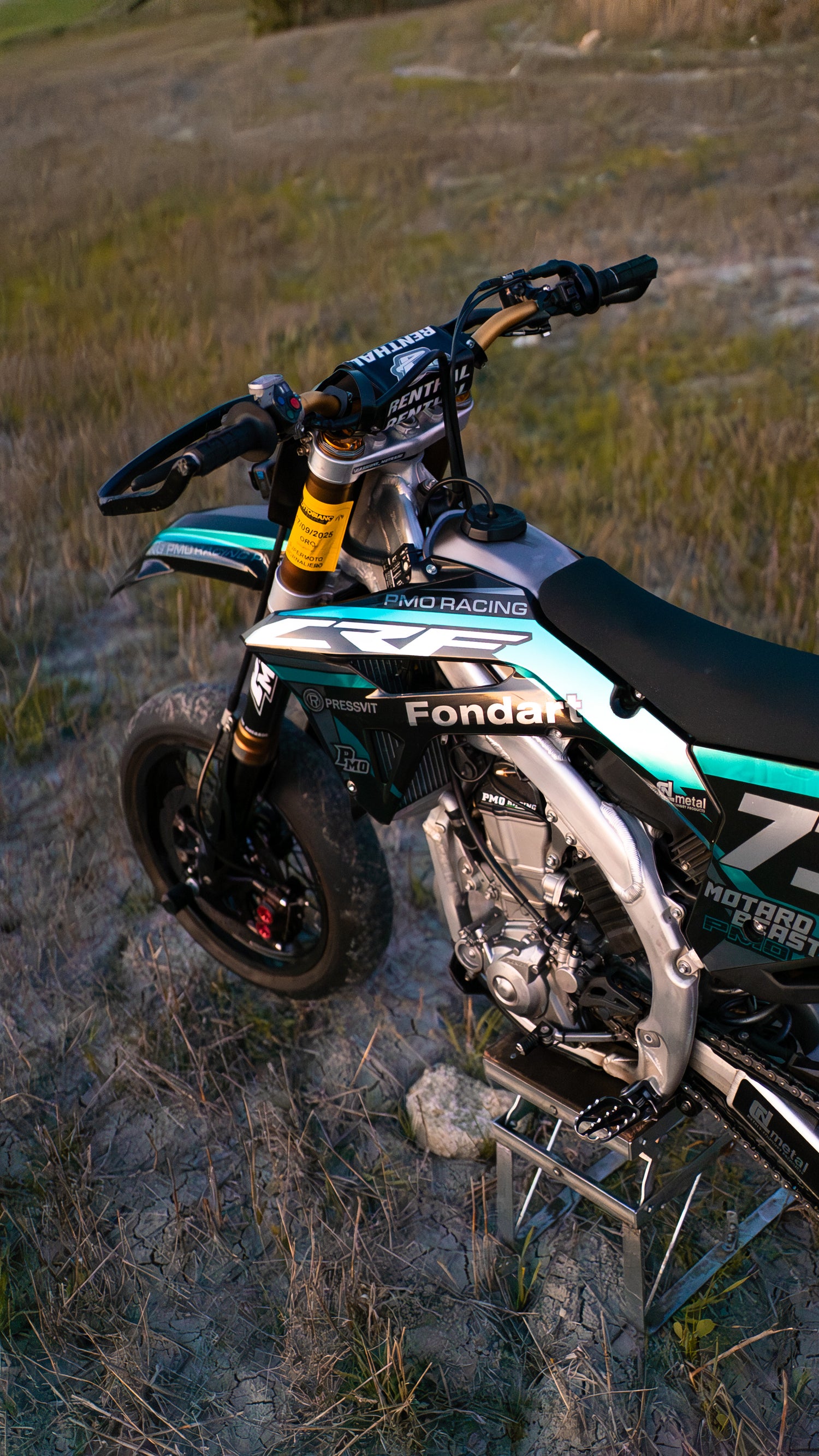 Sotto la sella, potenza pura. Una ciclistica raffinata, sospensioni settate per l’estremo, e una preparazione da gara che garantisce reattività, grip e precisione su ogni curva della salita. Ogni dettaglio è studiato: dal manubrio al cerchio, dal radiatore alle grafiche, nulla è lasciato al caso.